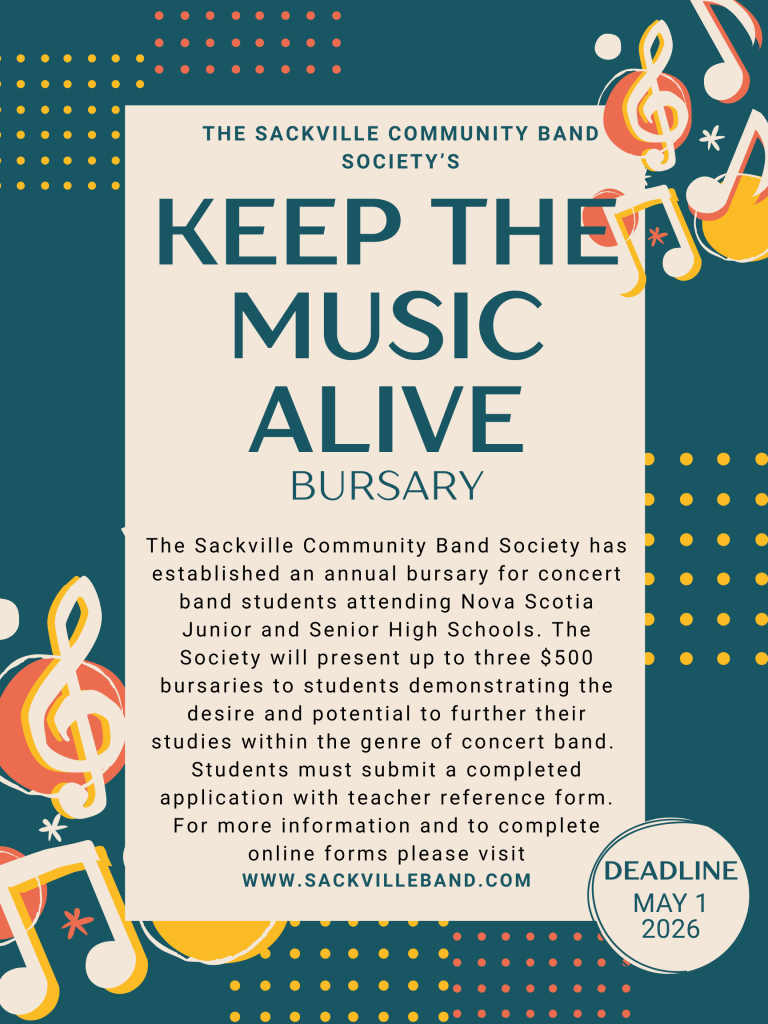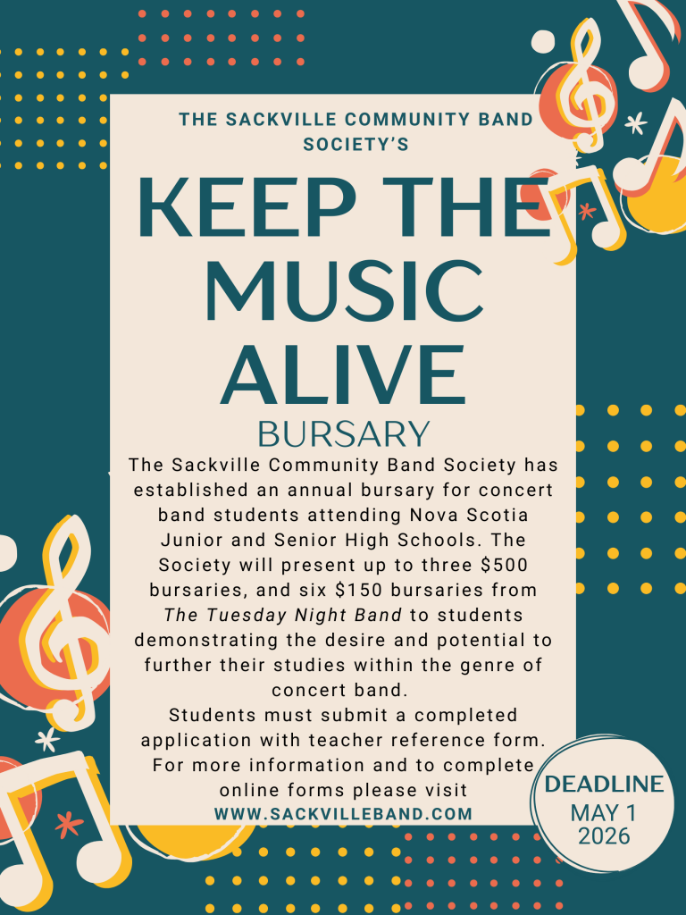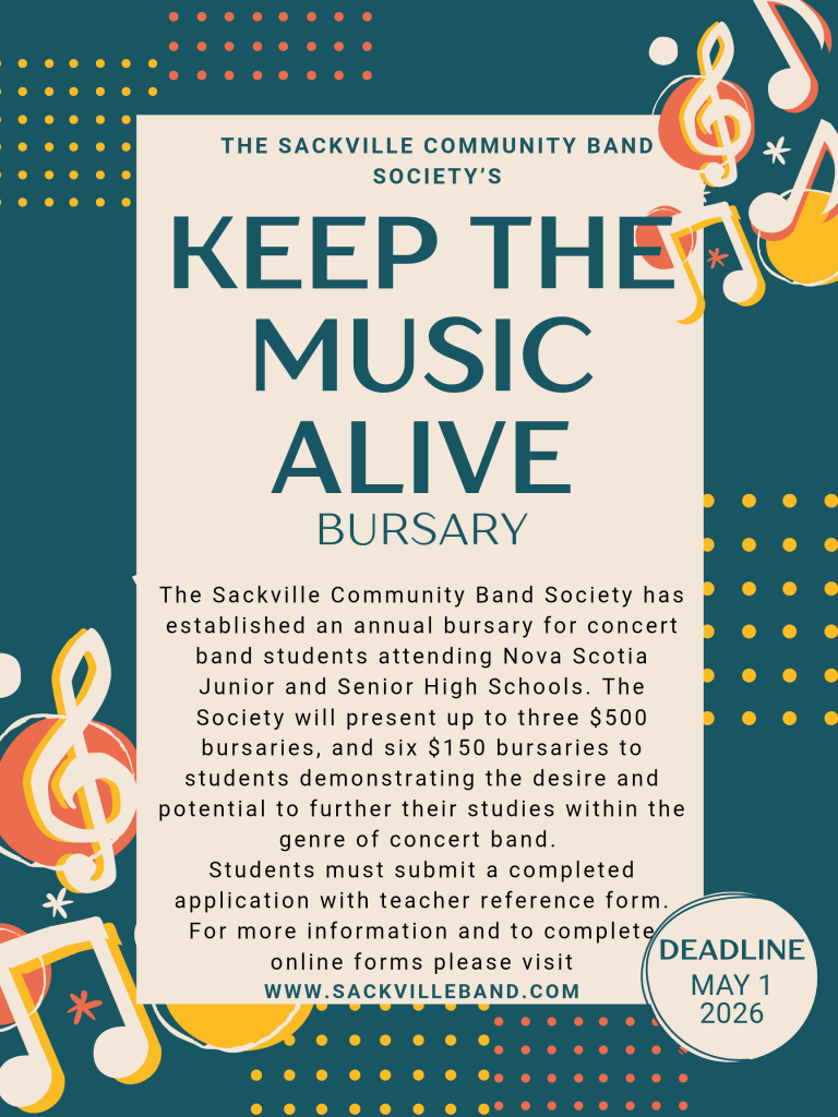 As part of the Sackville Community Band Society, we are a registered charity, and as such, if you would care to make a donation, please contact us via email or click the DONATE NOW button. Thank you!